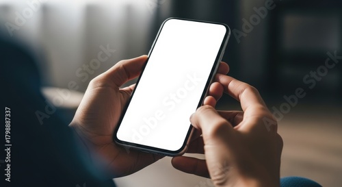 person, smartphone, blank, screen, indoor, setting, hand, technology, device, modern, communication, lifestyle, casual attire, home, interface, user, fingertip, photo, closeup, digital, empty, background, portrait, personal, interaction, contraption, relaxed, workspace, privacy, accessibility, mobile, innovation, contemporary, sharpened, ergonomic, design, isolation, usability, comfortable, connection, display, engagement, minimalism, gesture, everyday, simplicity, visual