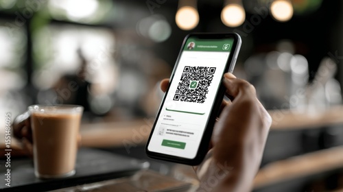 person, holding, mobile, phone, with, digital, vaccine, passport, app, on, display, code, immunisation, pandemic, travel, safe, hot drink, technology, lifestyle, health care, showing, certificate, indoor, verification, document, health, safety