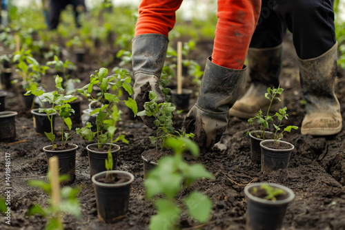 Person planting trees or working in community garden promoting local food production and habitat restoration, concept of Sustainability and Community Engagement
