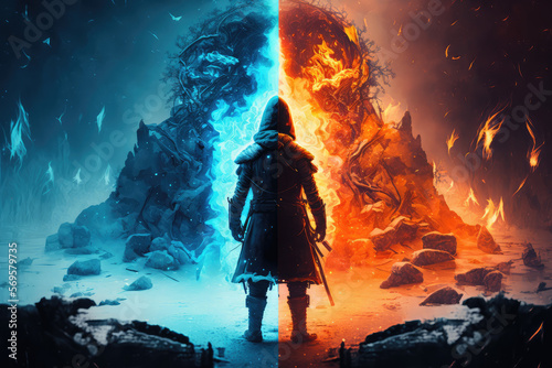 Person Standing And Watching The Battle Between Good and Evil - Generative AI