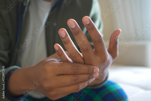 Person suffering wrist pain at home
