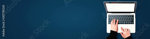 laptop, computer, technology, business, financial, marketing, finance, remote, work, job, home, distance, telework, meeting, accounting, account, online, shopping, research, office, tech, table, desk, working, concept, notebook, hand, woman, digital, flat, lay, minimal, simplicity, up high, overhead, view, top, background, shadow, dark