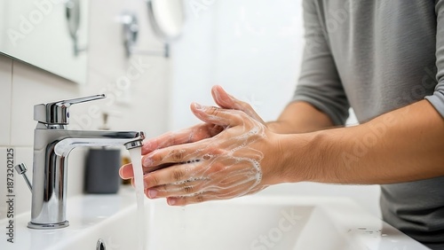 hand, laundered, soap, faucet, water, clean, hygiene, health, person, human, sink, bathroom, cleanse, rub, palm, finger, wet, flow, silver, tap, white, basin, sanitize, germ, prevention, safety, medicine, health care, foam, disinfect, germ, disease, pandemic, precaution, caution, alert, care, cleanliness, healthy, habit, routine, daily, personal, protection, risk, reduce