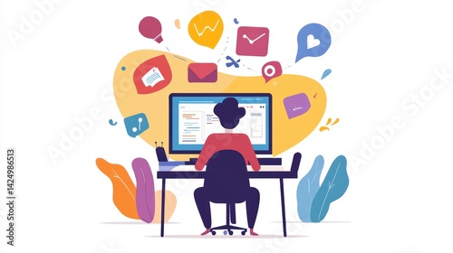 person, computer, work, desk, office, digital, icon, electronic mail, message, communication, technology, cyberspace, online, social, media, network, connection, datum, information, design, creativity, idea, innovation, productivity, efficiency, multitask, sharpened, concentration, success, achievement, growth, progress, development, strategy, planning, project, task, team, collaboration, workflow, process, system, solution, future, modern, contemporary, abstract, graphic