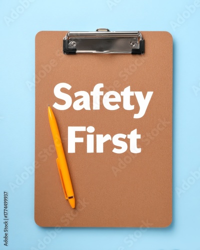 compliance, safety, first, clipboard, pen, flat, lay, top, view, label, white, background, office, supply, alert, caution, reminder, workplace, security, protection, priority, measure, precaution, symbol, concept, message, communication, work, professional, organised, leadership, management, alertness