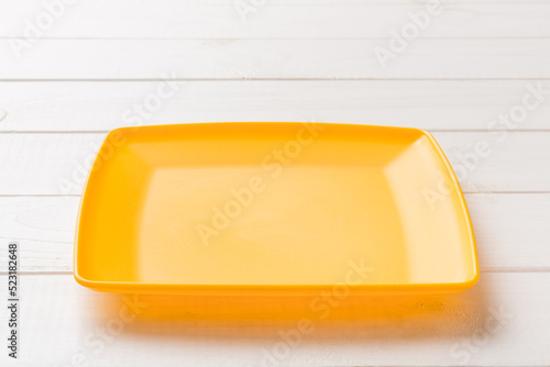 plate, dish, empty, single, perspective, view, blank, background, lunch, meal, nobody, object, porcelain, simple, kitchen, space, eatery, dining, table, dinner, copy, cookery, ceramic, food, breakfast, cooking, utensil, clean, clipping, crockery, serving, setting, wooden, square, yellow, board, platter, tray, ceramic, round