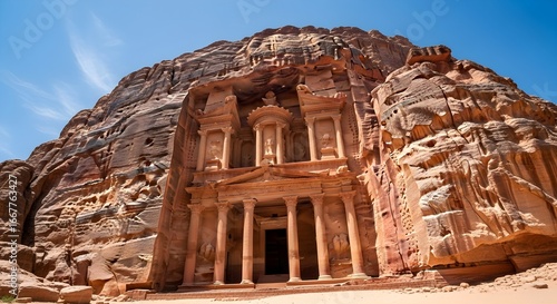 petra, jordan, treasury, rock, facades, ancient, architecture, building, historical building, history, travel, tour tourism, culture, heritage, sightseeing, destination, landmark, wonder, earth, heritage site, archaeology, ruin, stone, carving, detail, column, entrance, doorway, desert, landscape, vacation, exploration, adventure, sandstone, temple, middle east, historical site, iconic, famous, beautiful, amazing, incredible, spectacular
