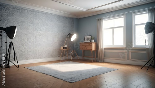 Photo interior modern design room 3d illustration;