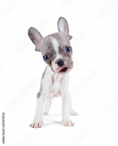 photo of a cute french bulldog puppy studio shot on an isolated white background
