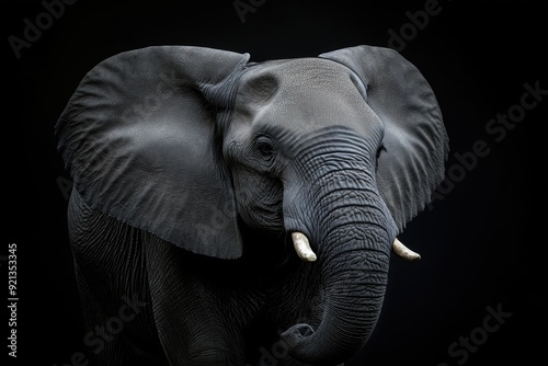 majestic, elephant, wildlife, conservation, regal, power, strength, isolation, black background, elegance, noble, authority, grace, dignity, nature, sharpened, portrait, fierce, solitude, wilderness, protection, endangered species, predator, jungle, animal rights, vulnerable, pride, dominance, safari, stillness, calmness, untamed, minimalism, iconic, symbolism, timeless