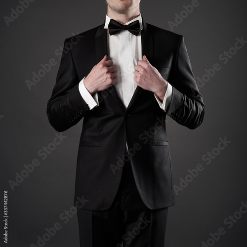 Photo of stylish man in elegant black suit