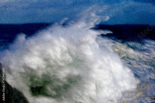 Photo painting, illustrated photo, with relief oil painting effect, stormy sea in Cabo A Frouxeira, A Coruña, Galicia, Spain,