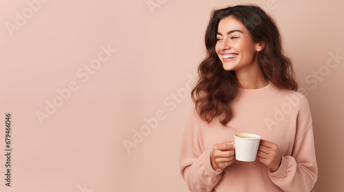 background, woman, hot drink, fashion, girl, hair, happy, tea, smile, work, student, lifestyle, model, pink, fun, men at work, young, beautiful, job, drink, beverage, emotion, caffeine, cappuccino, cocoa, latte, cocoa, mug, cup, morning, jumper, leisure, positive, brunette, teal, joy, expression, attractive, break, calm, early, female, pause, pullover, relaxed, rest, style, stylish, tranquil