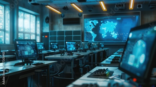 photograph of A computer science lecture in a high-tech lab