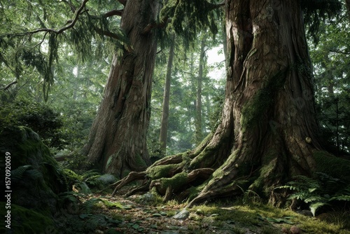 Photorealistic Ancient Forest with Giant Trees – Natural Scenic Landscape