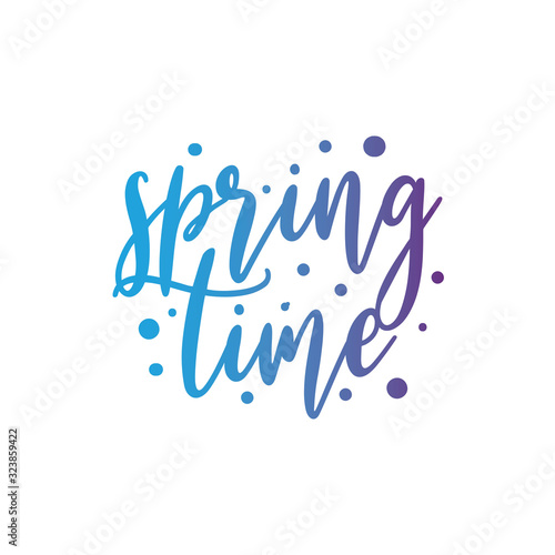 Phrase "Spring Time" Colorful hand lettering isolated on background. Handwritten vector Illustration.
