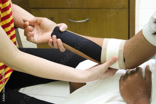 taping, tape, patient, male, accident, people, skill, muscle, lower, female, touching, injury, medicine, equipment, arm, therapy, body, athlete, professional, procedure, indoor, man, doctor, ache, pain, human, recovery, adhesive, medicals, orthopedics, occupation, sticking, woman, young, care, exam, physical, limit, rom, release, help, tapping, thai, siam, useful, elbow, physical therapist
