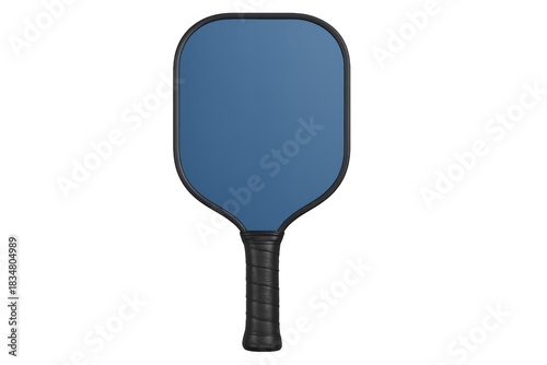 Pickleball paddle with blue face and black handle isolated, ready for court sport and recreational activity