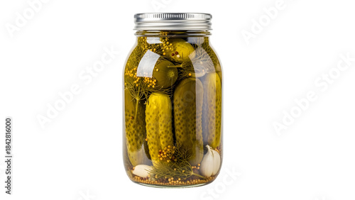 isolated, food, preserved, cucumber, pickle, jar, container, beverage, snack, dill, sour, tasty, appetising, clear, gherkins, delicious, eating, culinary, garnish, snacking, mealtime, cooking