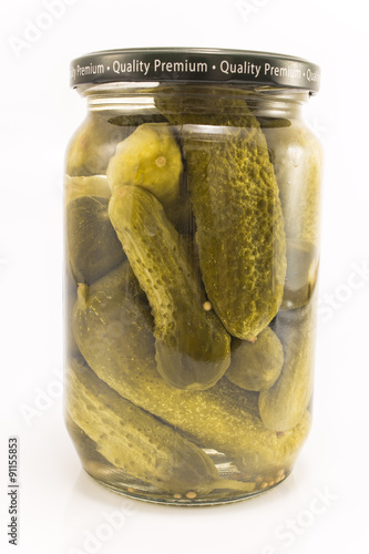 pickle, pickle, jar, cucumber, cucumber, isolated, white, canned, gherkins, preserving, coriander, vegetable, vegetarian, health food, healthy eating, container, glasses, green, black, cap, closed, vertical