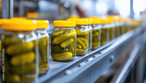 pickle, jar, factory, food, production, conveyer, belt, processing, industry, manufacturing, preservation, cucumber, dill, brine, canning, cardboard box, food processing, agriculture, harvest, plant, green, yellow, glasses, metal, line, system, automation, technology, equipment, machinery, industrial, commercial, mass production, fresh, tasty, delicious, vinegar, seasoning, ingredient, vegetable, crisp