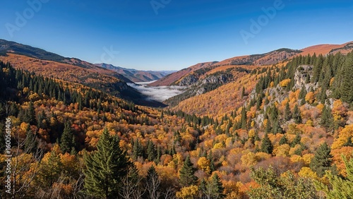 Picturesque Autumn Forest Overlooking a Valley