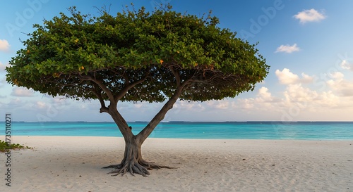 tree, beach, ocean, sky, sand, water, nature, landscape, scenic, tropical, summer, sunlight, horizon, blue, green, white, cloud, daytime, coast, shore, environment, natural, beauty, peaceful, serene, vacation, travel, destination, flora, tour tourism, visualisation, background, isolated, copy space, composition, calmness, idylli, calm, clear, light, growth, leaf, tree branch