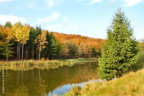 piękna kolorowa jesień, jezioro