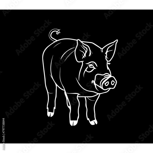Pig , lines, simple, logo, black background and white lines