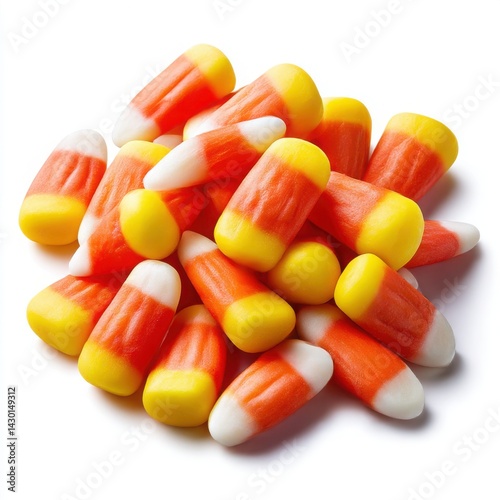 Pile of candy corn pieces isolated on white background