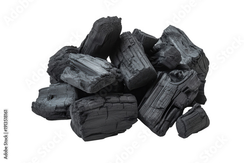 Pile of charcoal chunks isolated on a transparent background