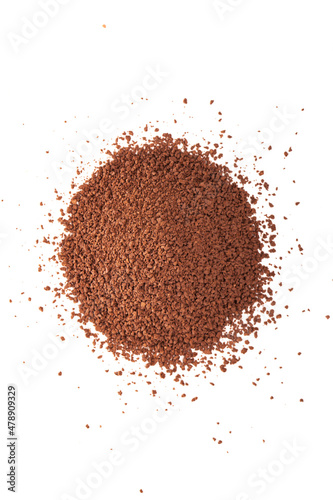 Pile of cocoa powder isolated on white background.