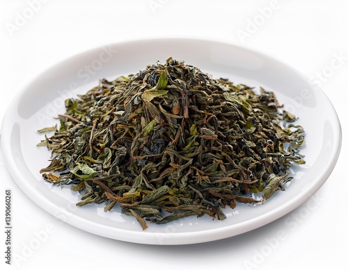 green, tea, leaf, plate, isolated, loose, leaf, beverage, dry, aromatic, herbal, healthy, refreshing, natural, white, organic, traditional, antioxidant, relaxation, caffeine, nourishment, favor, calming, drink, asian, culture, culinary, ingredient, wellness