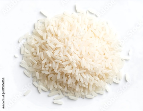 rice, grain, white, food, pile, heap, cooked, uncooked, healthy, alimentary, organic, natural, tasty, foodstuff, ingredient, closeup, topview, isolated, white background, texture, culinary, asian, carbohydrate, pale, luster, detail, whole, unrefined