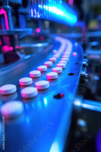 pill, tablet, medicine, manufacturing, production, pharmaceutical, industry, factory, technology, automation, conveyer, belt, machinery, equipment, process, drug, pharmacy, health, care, medicals, science, engineering, innovation, blue, pink, light, metal, clean, sterile, modern, industrial, synthetic, chemical, drugged, treatment, health care, workflow, system, assembly, line
