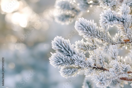 winter, frost, pine, snow, ice, cold, nature, tree, tree branch, season, christmas, glacé, white, landscape, background, sunlight, morning, scene, crystal, december, jan, february, holiday, light, beautiful, closeup, detail, needle, forest, timberland, outdoors, weather, rime, hoar frost, twig, conifer, evergreen, bokeh