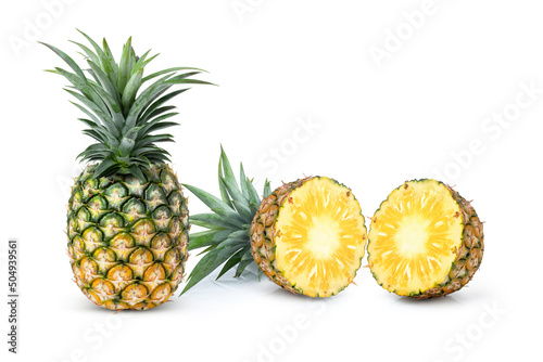 pineapple, fruit, food, isolated, tropical, ripe, white, sweet, fresh, pineapple, healthy, green, juicy, freshness, yellow, object, vitamin, organic, raw, leaf, dessert, juice, colours, nature, diet, cut, half, slice, sliced, cross section