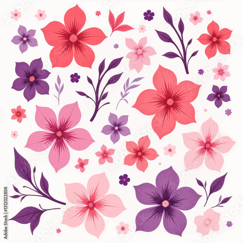 flower, floral, pink, purple, red, blossom, flower petals, nature, botanical, garden, design, illustration, pattern, decorative, spring, bloom, floral arrangement, floral pattern, floral pattern, floral pattern, floral background