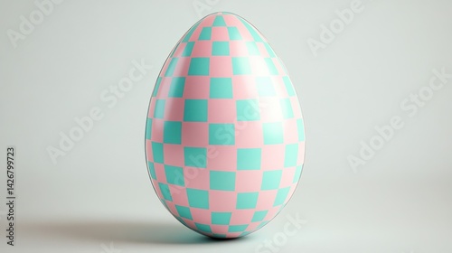 Pink and Teal Checkered Easter Egg Decoration on Light Background
