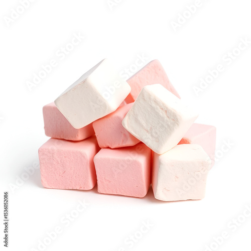 pink and white zepyr marshmallows isolated ob white background