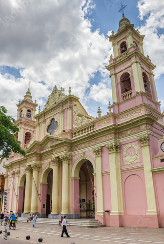 Pink and yellow Basilica Cathedral of Salta, Argentina
