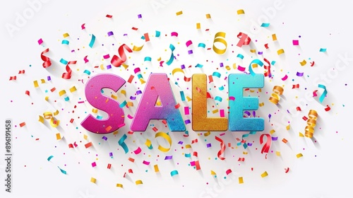 pink blue SALE text on festive white background with flying paper confetti, retail promotions, discount events and social media marketing Big sale offer..