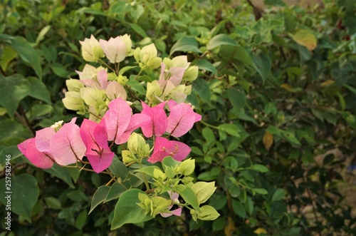Pink Bougainvillea bouquet blooming on the tree with green leaves look colorful and beautiful ,Huahin Thailand.