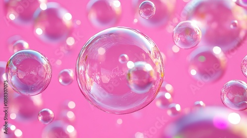 Pink bubbles floating in the air with a soft, dreamy feeling. The bubbles are scattered throughout the image, creating a sense of movement and playfulness
