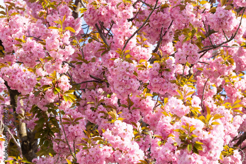 blossom, cherry, tree, pink, flower, leaf, spring, nature, bloom, botanical, foliage, garden, sunlight, blue, sky, vibrant, seasonal, tree branch, growth, landscape, beauty, floral, park, scenery, environment, fresh, natural, scenic, bright, colourful, texture, closeup, detail, shadow, calmness, peaceful, aesthetic, flora, blooming, plant, springtime, copy space, visual, photo, image, scene