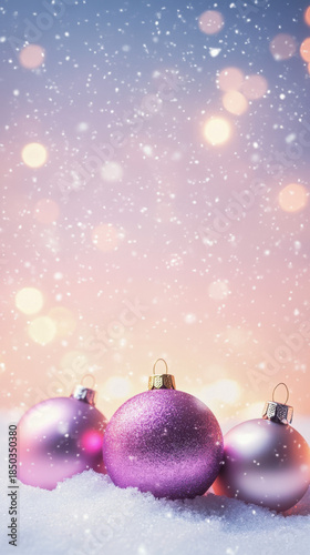 Pink Christmas Ornaments on Snow