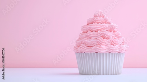 Pink Cupcake with Whipped Cream on Pink Background