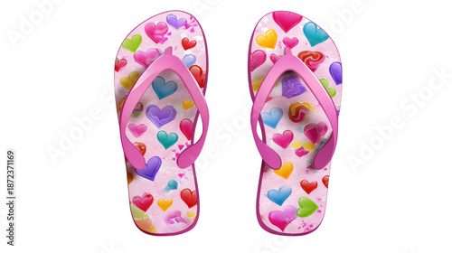 Pink Flip Flop Decorated Shoes Isolated on White Background for Summer Footwear and Fashion Concept