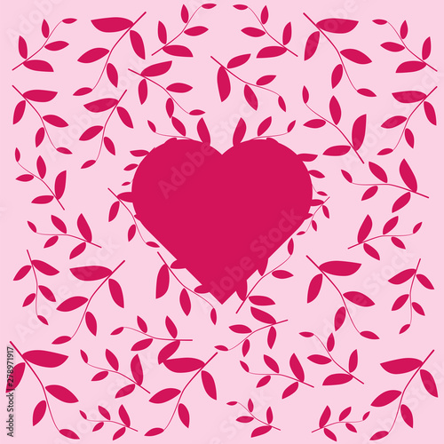 Pink heart with a pattern of leaves and plants in pink colors. Small pattern for decoration or invitation for a wedding or Valentine s Day.