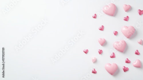 Pink hearts dance playfully across a pristine white surface, creating a whimsical scene of love and joy, perfect for celebrating Valentine's Day.